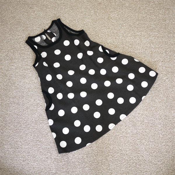 大きく広がるシルエットは、着たときに程よいドレープ感。大きな水玉模様だから元気に着こなしてね。
