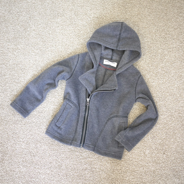 ハードな印象のライダースジャケットも、フリースだったらこんなにソフト。フード付きなのも可愛いポイント。