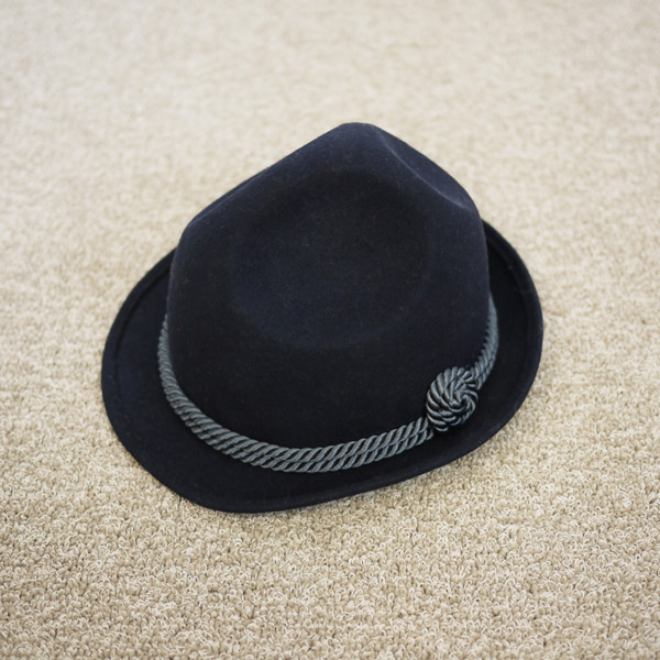 丸いトップにへこみを付けて、ちょっぴりシックなフェル帽。カジュアルな着こなし似合わせるのが上級者。