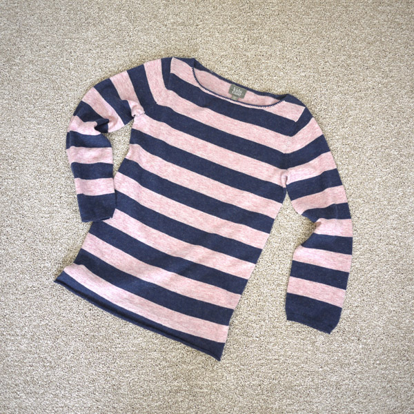 ちょっとロング丈のボーダーセーター。女の子はもちろん、男の子にだってオススメです。