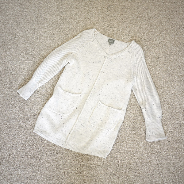 カシミヤ混コットンのセータードレス。センターのプリーツやポケットなど、やりすぎないデザインが◎。