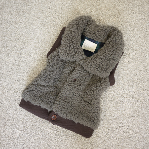秋冬の重ね着に便利なベストは、モコモコタイプが今年のオススメ。裏地のチェックもカワイよね。