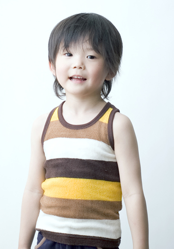 ボーダーがカワイイタンクトップは、 柔らかい着心地のパイル生地。 元気いっぱいの男の子にぴったりだよね。