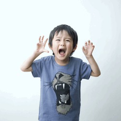 ガオ~ッ! って吠えてる口もとは ライオンかな? トラかな? クマかな? 強い男の子にはこんなTシャツがいいよね。
