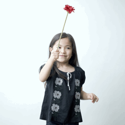 ふわっとしたシルエットにお花の刺しゅう。 ブラック&ホワイトの色合わせも、 こんなデザインならキュートな印象に。