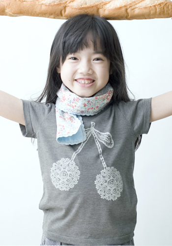 レースのサクランボが超キュート! ストールみたいな小物をあわせて、 ガーリーに着こなそうね。