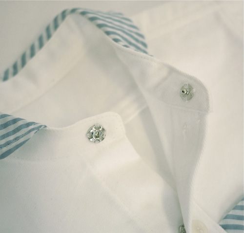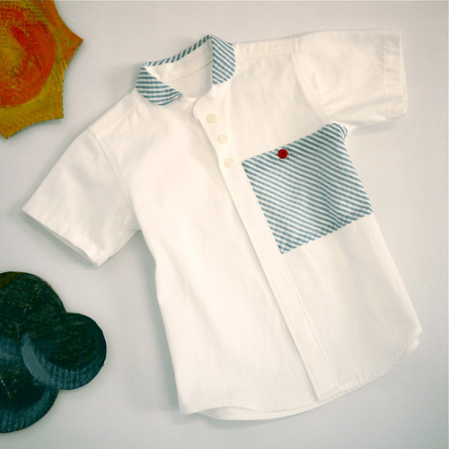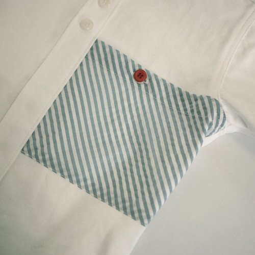 ラウンドカラーと大きなポッケにストライプ。