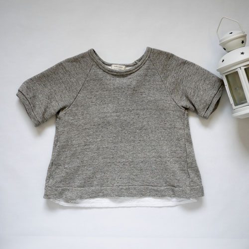 前から見ると半袖の霜降りスウェット、